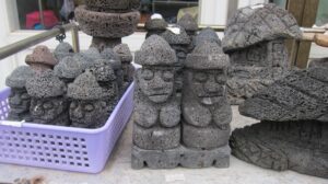 Rock Basalt souvenirs for sale (over 90% of Jeju's surface is basalt so this is a common souvenir); Yongduam Rock
