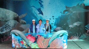 Chi Xuan, Di Tam and Di Phuong at the marine exhibition of Jeju's Natural History Museum
