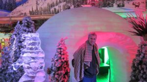 Robby at the entrance to a massive ice igloo; Sumokwon