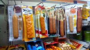 Korean "meat on a stick" snacks for sale at a local 7-Eleven store