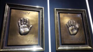 Handprints of famous K-pop stars Psy and Big Bang; Play Kpop Museum