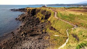 Climb up to the lighthouse for dramatic views of the coast line; Seopjikoji