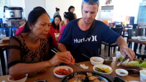 Robby, Dung Sau and Di Sau await our Pork BBQ lunch feast
