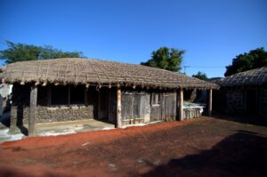 Traditional dwelling built of thatch and lava rock; Seongeup Folk Village