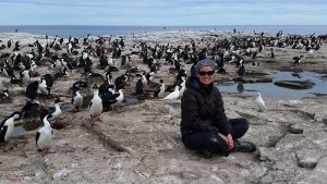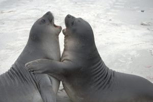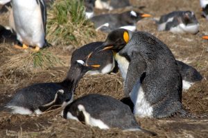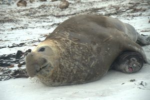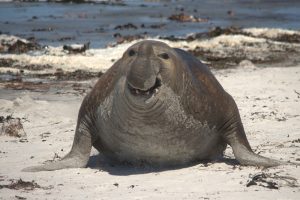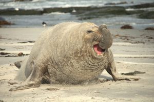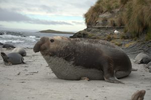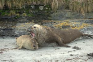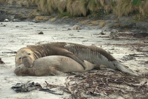 Sea Lion Island is the southernmost settlement in the Falkland Islands. We spent 4 nights here at the lodge which is run by an interesting and friendly guy named Micky. Alas, we had been spoiled at Volunteer Point and Saunders Island where we pretty much had all the wild life to ourselves. That was no longer the case at Sea Lion Island since we had fellow guests and scientists about but no matter, the island was plenty big enough to get away from it all. Even though we were here during the beginning of tourist season, the wild life didn’t know that. The bull elephant seals had already converged on the island by mid September with the female cows arriving a week later. The alpha males had already fought for dominance and mating rights with the cows. About 500 pups are born annually on Sea Lion Island each October, so by the time we arrived in mid November, it was the perfect time to see the bulls, cows and newborn pups consolidated into various harems on the beach. It was fascinating to learn that because the bulls are constantly facing off competitors to defend their harems, they get very little sleep and exert a ton of energy, thus losing up to 40% of their total body weight in just a few weeks! The cows aren’t spared the weight loss either – from the time they arrive to give birth and nurse their pups (a mere 3 weeks before the pups are weaned and abandoned to fend for themselves), they too lose a whopping 30 to 40% of their weight as well. Needless to say, we spent hours observing elephant seals interacting and were completely mesmerized by their behavior. However, Sea Lion Island has more than just elephant seals. There are sea lions, penguins (gentoo, rockhopper, and a solitary king who decided to crash the gentoo colony), king cormorants, and a myriad of bird life. Back at the lodge, we ate very well with hot meals for breakfast and dinner, and a sack lunch to go. Getting to know our fellow guests over meals was very interesting and our ensuite room was more than comfortable. Our 4 nights here on Sea Lion Island flew by!