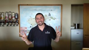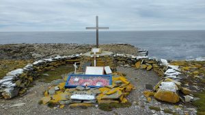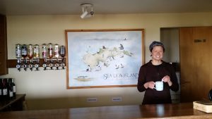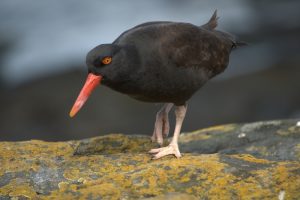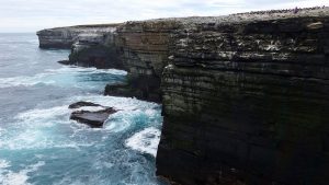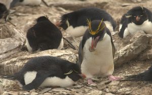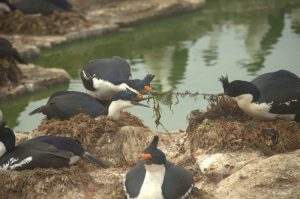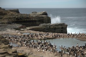 14 Nov: Robby’s birthday! Alarm at 4:30 am revealed fog this morning so we quickly went back to bed. Got up at 6 am for a wander down the beach. Orcas were patrolling the beach but no activity by the orca pool. Suddenly at 7:30 am, we saw a flurry of activity from the predator birds that started flocking one area of the sea and we realized we had witnessed the aftermath of an orca kill. Not sure when the orca ate the seal but it must have been around that time. After breakfast, took a short siesta while waiting for our pack lunches to be prepared. At 10 am, we luckily caught a ride with Margaret and her husband Piers to the other end of the island where Micky dropped us off by the cormorant colony. It was cool to see an entire colony dedicated to the imperial cormorants. We watched as they played tug of war with each other as they were building their nests with long strands of kelp. Very funny! Took some GoPro video and also admired the amazing cliff formations along the coastline. It was as if someone had cut through the rock with a precision cutter…very cool to look at. From the cormorants, it was a 1 KM walk to the rockhopper colony. We spotted the lone macaroni penguin in the rockhopper colony. He was snoozing at first, but woke up to be a bully towards his neighbors while stealing their rocks to gift to his own partner. Other rockhoppers were doing the same thing, and we were fascinated by their thievery. A fantastic arch formation was nearby so of course we took some photos on it. Then the 4 KM trek back to the lodge, with a 1 KM detour to check out the sea lion cliffs (unfortunately no sea lions today). Back at the lodge, we warmed up with hot chocolate and chocolate cake, before a brief siesta. Went down to the beach for the hour before dinner and got to watch high stakes drama unfold between 4 bull elephant seals by the beach. A rogue interloper swam the length of the beach to sneak his way between two snoozing bull elephant seals. Once they were aware of his presence (the members of their harems let them know with worrisome cries of fear), they built up the strength to battle him off. He slunk off after being challenged (he had already nearly lost an eye in an earlier battle), but now one of the challengers was in the neighboring bull’s territory. So another fight ensued, and we were caught in the thick of it. It was a bit scary not knowing the proper place to stand to avoid getting involved! Dinner was a pea soup, fish with potatoes au gratin, followed by a sumptuously rich carrot cake with berry dressing. Had a beautiful sunset with lots of pinks and reds. Robby was lucky to spend his birthday in such a wilderness paradise!