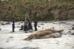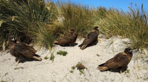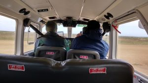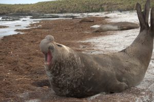 16 Nov: The alarm didn’t go off this morning but we were still up by 5:30 am. Packed our gear and then head out to see what was going on at the beach. No orca activity and most of the females had disappeared overnight, leaving only depleted and weary bull elephants and pups on the beach. We stayed for an hour and then went back to the lodge for some warm beverages. Had breakfast at 8 am and then checked out of our room since our flight to Stanley was now scheduled for 9:25 am. It was a short 30 minute flight to Stanley airport, with fine views throughout the flight.