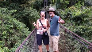 26 Dec: 14 hour day tour. Pick up at 7:30 am from Sunset Inn Valle Del Volcan from Jacamar Tours. Recommend: hiking shoes or tennis shoes, comfortable clothing, bathing suit & towel, insect repellant, camera, binos, dry bag for the hot springs. Includes lunch and dinner. No open toed shoes allowed for the hanging bridge! Cost: $187 each Note: this full day tour that takes us to all the highlights of this area. It starts at 7:30 am and goes until 10 pm. All entrance fees, lunch and dinner are included. The company is “Jacamar Naturalist Tours” and the tour is the Combo Tour and Baldi Hot Springs. Sights to visit with a naturalist guide are: Arenal Hanging Bridges, Rio Fortuna Waterfall, Arenal Volcano private reserve 1968 lava hike, and natural mineral hot springs of Baldi.