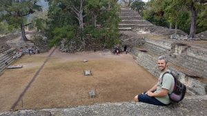 18 Jan: Slept well until 7 am. Breakfast was a fried egg, refried beans and tortillas. We set off to the ruins just after 8 am and ran into one of the Chinese ladies we met at the Santa Ana Casa Verde hostel. She was apparently on her own and immediately latched onto us to explore the ruins. She spoke neither English nor Spanish and her friend (who could speak good English) had ditched her to remain in Antigua, Guatemala. We were worried about how this lady was going to make it on her own in a region where she could not communicate with anyone. Boy is she brave! The tickets to the Copan ruins was $15 and a separate ticket for the sculpture museum was another $7. We bought a ticket to the ruins and figured we could wing it for the museum later. The ruins were much better than expected. We didn’t anticipate macaws flying around overhead, nor the amazing carved stelae. The Mayans were truly ahead of their time! Bonus about visiting the Copan ruins was there were hardly any other visitors and we had the place to ourselves for the first 2 hours…brilliant! The main site was well worth it, and since our ticket also included entrance to “los sepulturas”, we decided to hike out to them. So not worth it…disappointing after the magnificent display at the main set of ruins. We walked back towards the main complex and decided to add in a visit to the museum which was excellent. Worth the additional $7 fee and we spent some time here admiring the intricate carvings. Our Chinese friend decided to leave us to get lunch so we bid her goodbye. Back in town, we wandered around trying to find some food and ended up back at Buena Baleada for two beef baleadas. Delicious! Discovered that our shower here was actually hot water, so took a nice, long shower which helped against the cool temperature of Copan. Our Chinese friend came by for some help in translation, so Becky went out to discuss her upcoming trip to Flores with the Berakah receptionist. So happy everything got sorted for her in the end. Fingers crossed she can find a Chinese speaker in Guatemala and Belize who is willing to help her out. We found out that we have to leave here tomorrow at 5 am…gonna be an early one tomorrow!