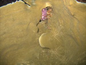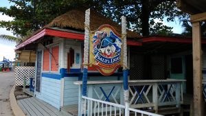 21 Jan: Woke up at 7 am after a decent night’s sleep. It was drizzly and overcast when we got up but we hoped that the diving wouldn’t be affected too much. Had cereal before heading over to the dive shop. Our dive master today was a retiree named Randy. We were asked if we were definitely doing just 1 dive today and since neither of us wanted to commit to 2, they sorted out our gear and we went over to the south side. Dive site this morning was next door to “Pirate’s Cove” yesterday, at a site called “Pink House” (yup, there was a pink house right on shore…very original name!). We had a nice leisurely 1 hour dive, 40 minutes peeking at every crevice on the wall and 20 minutes looking at reef fish in the shallow part. It was a nice dive but the water was cold towards the end and boy were we glad to have full wet suits! Randy was glad we weren’t doing a second dive and we were too. It would have been miserable having to wait an hour while feeling cold. Back at West End, we rinsed off and thanked Randy for a fun dive. He is doing the wreck dive tomorrow so we’ll see him then. Walked over to West Bay (on the beach and over the rocks) and a cruise ship was in town so the beach was overrun with tourists. Food was overpriced and nothing looked appealing, so we walked back to West End and finally got lunch at 2:30 pm (baleadas at Calelu’s). The guy working at Calelu had been greeting us the past 2 days and we felt obliged to have a meal at this cheap local shack. Lunch for 2 came out to $7 with drinks…not too shabby. Took an afternoon siesta and then woke up for pizza at C Level (soon to be renamed Cognac’s Pizzeria) in honor of their dog, Cognac. We had a yummy pepperoni pizza here which made up for all the crappy pizza we’d been having lately. Becky finished watching “A Star is Born” which was a good movie. We researched “Daniel’s Sloth and Monkey Hangout” and planned to make a trip there on Wednesday, our last day on the island.
