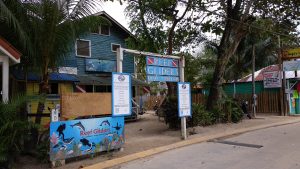 20 Jan: Slept in till 8 am and had cereal for breakfast. Wandered up and down the strip in West End to scope out the best SCUBA deal. In the end, we went with Reef Gliders, whom Becky had been in touch with a few weeks ago. Our dive was scheduled for 11:30 am and we opted to do the 2 pm dive as well. Inclement weather forced all the dive shops to abandon West End and shuttle their clients over to the south side of the island (Flower’s Bay) which was more sheltered. We had to pay an extra $5 for that. First dive was at “Angie’s Wall” and the second dive was at “Pirate’s Cove”. We had a bunch of newbies in our group for the first dive which we didn’t care for initially, but we lingered towards the back and had the freedom to do what we wanted so we liked that. The coral was fantastic and we can see why people rave about diving in Roatan. Our chicken sandwich lunches were delivered and we devoured them during the surface interval. Our second dive was just us and our dive master, Sam from the UK, and we enjoyed that one as it was an easy drift dive. It was 5 pm by the time we got back to the dive shop, so we sorted our gear, took a quick outdoor shower and said goodbye after signing up for more dives tomorrow. Dinner was peanut butter sandwiches and we stayed indoors as it was raining and windy out.