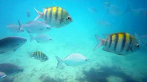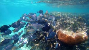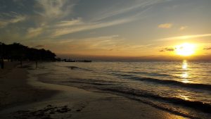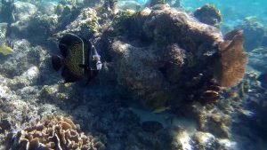23 Jan: Last full day on Roatan. Sunlight was streaming into our room by 7 am. Another beautiful day today. We had cereal and then hopped on the bike and rode out to Sandy Bay. We wanted to snorkel at Spooky Channel but met a homeowner there who said she felt that the area by Bahia (next door to Anthony Key Resort dolphinarium) was better. So we drove out there and checked out that area. Snorkeling was OK but hard to imagine this is the best the island has to offer. We did see lionfish, trunkfish, barracuda, the dolphins (at the resort being “trained”), and a porcupine fish. Maybe our expectations were too high but we thought it would be a lot better than what it was. Our scooter started acting up, and Robby had to use the kickstart to get the bike to turn on. We drove into town to grab pork baleadas for lunch before refueling the bike and riding over to West Bay for snorkeling by the black rocks. The cruise ship was in town and boy was in bonkers over there! Hundreds of people on the beach, some not very good looking either! We snorkeled for an hour before deciding to call it quits, heading back to Roacars to return the bike early. We let Alexis, the friendly lady who was working today, know about the ignition/kickstarter issue. Back at Didiers, we had cold showers and then went back out for a few hours to read and relax on the beach. Robby grabbed our rum and we had our own cocktails for sunset, and then we went over to Calelu’s for dinner (fish tacos and chicken dinner plus drinks for $14). Coordinated with Edwin for a 6 am drive to the ferry tomorrow, since we were catching the early 7 am ride back to La Ceiba.