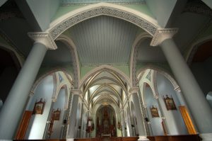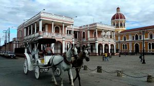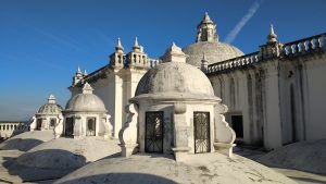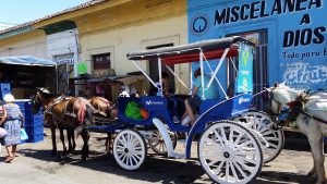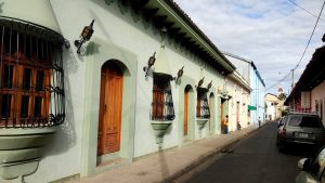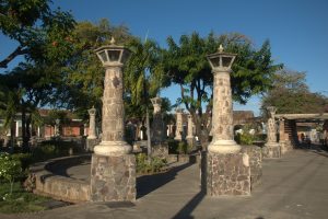 4 Feb: After breakfast, we walked over to the old hospital. Public access has been blocked off, but the kind security guard let us pop in for a quick sneaky photo. Three horses were running wild in the street, and we watched as traffic slowed down in an effort to avoid an accident. Only in Granada will horses take over the road! From here, we went over to the Gunpowder Fortress which is closed to the public. Lucky for us, a delivery man pulled up and the security guard opened up the locked gates for him. We snuck in behind him and asked if we could take a few photos. The security guard agreed if we were quick and we climbed up one of the turrets for a quick view and thanked him with a 20 Cordoba tip for his kindness. A striking church caught our eye and it was the Chapel Maria Auxiladora. It had impressive ceiling arches and a very peaceful and serene feeling. One of our favorite churches in Granada! Last but not least on our morning sightseeing tour was a visit to the cemetery, which was well worth a quick visit for its amazing tombstones. On our walk back to the hostel, we took photos of the other churches since the morning light was much nicer than the afternoon light, and we bought some chips for our guacamole for lunch. Spent the afternoon recuperating from the midday heat and didn’t venture out until dinner time. Back to our favorite street (Calle La Calzada) for a meal at Grill House. The wings here are fantastic with the buffalo sauce, so we each ordered a batch even though the drinks were more pricey here (80 Cordobas for Becky’s 2 for 1 macua cocktails, and 35 Cordobas for a small Tona beer). Worth the premium though just for the tasty wings!