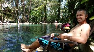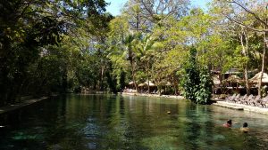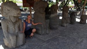 10 Feb: After breakfast, we rode to Finca Porvenir to check out their petroglyphs (40 Cordoba fee which included access to a mirador, 90 minute hike away) There were 2 massive carvings just outside the finca which would have been visited for free but we were happy to pay. One of the massive rock carvings was of a calendar and the other one was a human figure. Pretty neat and we were happy we made the effort to see the pre-Colombian artifacts. From Finca Porvenir, we drove directly to Ojo de Agua, a natural mineral pool that is popular with locals. Entrance for foreigners was $5 each which felt extortionate because the locals pay a fraction of that to enter. The water felt great and it was a nice, relaxing visit until the killer ants decide to attack. Their bite felt more like a bee sting, and we were left with welts…not cool! By lunch, we rode onward to Altagracia, pulling into the first gas station that we had seen since Moyogalpa. The highlight in Altagracia were the petroglyphs near the San Diego de Alcala Church in Altagracia. The carved volcanic statues here were half man, half animal. A fruit shack right next to Central Park whipped up fruit smoothies for us (banana & milk and papaya & orange) which were a treat. Good value at 50 Cordobas for a huge smoothie (plus free refills). From Altagracia, we rode the dirt road towards Moyogalpa. No wonder the rental agency had urged us to take the other road to get to Santa Cruz as this road was very rough in some places. Definitely not an easy joyride. We had lunch at a local eatery (chicken served with rice & beans, plantains and salsa) before a quick visit to the Pali Supermarket to stock up on cereal and water. Our last highlight of the day was sunset at Jesus Maria, which was as good as everyone had promised. Spectacular sunrise and a beautiful vista of the two volcanoes (although Maderas Volcano was shrouded in cloud cover the entire time). It was dark by the time we drove back to Santa Cruz, which took us nearly 45 minutes as we were going slow to avoid hitting pedestrians and animals that were out for an evening stroll. Dinner was at Mediterranean Pizza which was excellent! The owner must be Italian as this was some of the best Italian food we’ve had outside of Italy. Two huge thumbs up and we left stuffed and satisfied. The cold water showers at 9 pm didn’t feel great as the temperature had already cooled down but we needed to get the volcanic particles off (Jesus Maria sunset point has some ferocious winds kicking up volcanic dust). Thus concluded the end to our perfect day in Ometepe.