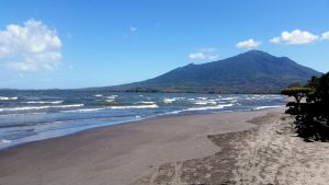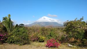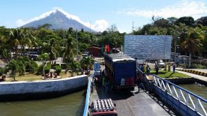 8 Feb: Bus from San Juan del Sur to Rivas, ferry from San Jorge to Moyogalpa, Ometepe. Rent motorcycle and ride to Santa Cruz, Ometepe