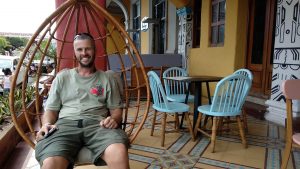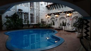 Selina, Granada: $23.27 a night for a double, ensuite bathroom, incl breakfast, AC, WiFi, shared kitchen, free drinking water, swimming pool, dance club, library, movie room, and collaboration work space. This hotel is in the best location in Granada, right on the town square facing the cathedral. It has a lovely porch with swings to relax the afternoon away. We were upgraded from our original room to a deluxe double with private bathroom and nice view after we discovered our shared bathroom had an issue with the toilet (it wouldn’t flush). We were very impressed with the staff’s excellent customer service skills! Our new bathroom had hot water showers and toiletries provided. The hostel has a big dance party every Thursday, Friday, and Saturday night so bring earplugs if you don’t want to join the partiers until 2 am every morning. Breakfast each morning is very nice with fruit platter, and beans/rice, eggs and toast with coffee. Every day from 5 – 7 pm, the bar offers happy hour specials. We loved this funky boutique hotel…great decor, great location, great price, it was perfect!