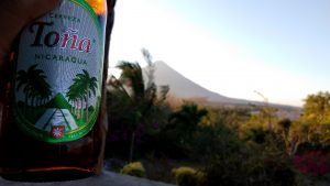 8 Feb: Slept well and woke up at 8:30 am for breakfast of cereal. Checkout wasn’t until 11 am, and we dropped off our big bags to storage and walked towards the mercado to catch a bus to Rivas. Cost was 25 Cordobas each and we were in Rivas in no time. The taxis tried to extort us so we waited by the bus stop and eventually got a shared taxi to bring us to the port for 20 Cordobas each…score. The next boat to Moyogalpa was at 12:30 pm, which meant we had 15 minutes but it was a “lancha” and the next ferry wasn’t until 2:30 pm. Since we didn’t know what to expect, we agreed to the lancha which was only 35 Cordobas each. What a crazy ride! We thought the boat might sink given the strong waves and wind, and we certainly got tossed from side to side but the seaworthy vessel made it in the end! We sat next to an interesting guy from Israel who was going to work at one of the hotels and he gave us the scoop for the island. In Moyogalpa, we quickly found Dinarte’s Rental where we got a motorcycle for $15 a day for 4 days. Alisha gave us a detailed rundown of things to do and places to see and Robby test drove the bike before we paid up and left $100 deposit. It was either the cash of a passport and we figured cash was better! The ride from Moyogalpa to Santa Cruz was straightforward and we reached our hostel by 3:30 pm. After checking in and dropping off our bags, we were starving for a late lunch/early dinner and headed over to Mediterranean Pizza which unfortunately wasn’t open until 5 pm. So we drove onward to Cafe Campestre which served up chicken wraps and chicken sandwiches in no time. The food here was delicious and the brownie dessert sinful. Ticked all the right boxes. Sunset over Conception Volcano was from our balcony with a Tona beer. Another good day in Nicaragua!