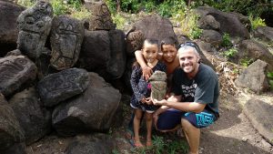 9 Feb: Slept in until 8 am. Other options in Santa Cruz had negative reviews complaining about roosters crowing at 5 am but this hostel is set far back enough for a peaceful sleep. We had cereal for breakfast and then drove over to the San Ramon Waterfall. Entrance was 100 Cordoba each and 70 Cordoba for our motorbike. Even though the rental agency urged us not ride the bike up the volcano, Robby felt confident enough and the two of us managed to get to the upper parking lot, shaving off 2 km of an uphill hike! From there, it was only another 40 minutes to the waterfall. Unfortunately, it was dry season so the falls weren’t gushing with water but it was a nice stop for photos and a refreshing dip. As we were leaving, a dog sauntered up to the falls. Apparently, he had hitched himself to 2 girls and led them on a hike all the way up to the waterfall! We hiked back down and the gloomy/rainy start gave way to sunshine. Good times. Our plan was to drive all the way around the ring road at base of Maderas Volcano, but bad luck as we drove past the hamlet of El Guineo. Our throttle stopped working as Robby tried to accelerate up a hill. Damn it…we had to call Dinarte’s (rental agency) and they wanted to be sure to understand what the problem was before sending out assistance. And reception sucked, so we walked back towards El Guineo for better reception and as luck would have it, a guy pointed out a family run garage just a few hundred meters away. The man of the household felt confident he could repair our throttle for only 100 Cordobas and Dinarte’s told us they would reimburse us the costs. An hour later, we were back on our way, heading towards the off beaten path at the far side of Ometepe Island. And good reason no one visits this side of the island…the roads are atrocious and our motorbike struggled on the very rough terrain. On the drive around, we spotted some petroglyphs to visit (30 Cordobas each) and our guide was a very cute 10 year old boy and his 5 year old sister. We saw a crocodile, monkey, labyrinth stone carving and enjoyed our interaction with the kids. The rest of our ride wasn’t notable. We didn’t see signs for any other petroglyphs even though we were actively searching for them. A late lunch/early dinner was at Bamboo Restaurante where we had smoothies and sandwiches. Perfect since we both were starving. It was 5 pm when we decided to head to Merida Beach’s Caballito’s Mar for sunset. Robby got a tona beer for 35 Cordoba and the sunset was gorgeous. We were back to our hotel by 6:20 pm and chatted briefly with the receptionist before calling it a day. Our cold water showers felt great after our hot and dusty day!