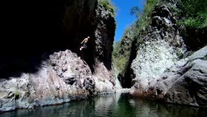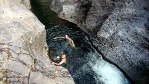 29 Jan: Got up early for breakfast before catching the 7:30 am bus from Esteli to Somoto (42 Cordoba for the 2 hour bus ride). It got packed quickly and the seats were cramped, making for a long journey up to remote Somoto. We were happy to see that Somoto Canyon Tours had sent a guide as promised, a young guy named Joshua. He greeted us and grabbed one other client, a German named Alex and the three of us set off towards the office so we could get ready for our canyoning adventure today. We were told to bring water, sunscreen, and a camera and to leave everything else at the office. Our shoes were swapped out for some well worn sneakers which looked perfect for a day of water activities. Then we were off, driven by Henry (the owner of Somoto Canyon Tours) towards our starting point. From there, it was a short hike towards the Tapacali River, where we walked along the river until we got to our first jumping point. Apparently we were visiting during low season, so the water levels were quite low. This didn’t dissuade us from jumping though! The first jump was 3 meters and it was easy so all of us did it twice before moving on. The canyon itself got more beautiful as we continued downstream, and our GoPros got a workout trying to capture the sights and sounds. Swimming, scrambling, hiking, and jumping the full 14 KM trail took us under 6 hours as we moved pretty quickly. We were back to our starting point by 3 pm where a lunch of grilled pork, rice and beans and salad awaited us. Yummy! We had enjoyed Alex’s company and conversation throughout the day and promised to send him video of his jumps when we had decent internet. Our bus pulled up at 3:40 pm and we pulled into Somoto Bus Station a few minutes after 4 pm. Thankfully, the bus from Somoto to Esteli was waiting for us, and we were the last two to get on the bus! The return ride cost 40 Cordoba and took another 2 hours, so the sun had already set by the time we got back to our hostel. We told our hostess that our plans were to leave early in the morning, and asked if it would be OK to use the kitchen at 5:30 am. She readily agreed, and we relaxed in the room for the rest of the night. Another nice day in Nicaragua!