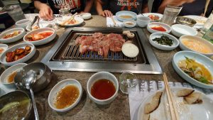 Trying soju at Chosun Galbee, a popular Korean BBQ restaurant