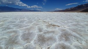 Shallow pools and salt deposits at Badwater Basin; Death Valley