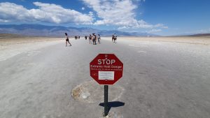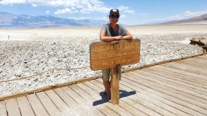 Becky at the lowest point in North America at Badwater Basin, 282 feet below sea level