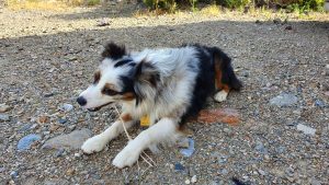 Australian Shepherd wanting to play at our free campsite in Death Valley - Wildrose Campsite