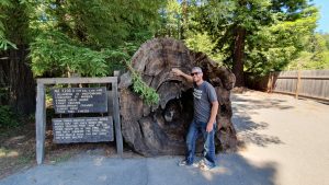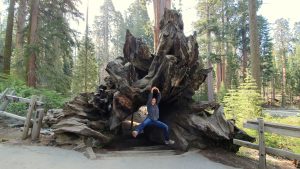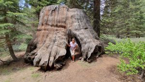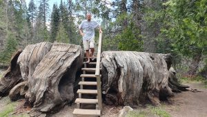Robby at “The Big Stump” of the Mark Twain Tree, a 1350 year old tree that was cut down in 1891