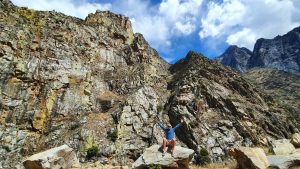 Becky on the High Peaks Trail hike; Pinnacles National Park