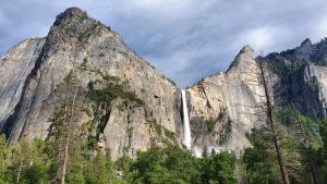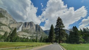 In awe of Yosemite's numerous waterfalls as we drive into Yosemite Valley