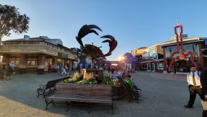 27 Apr: Corona Del Mar Beach, Fisherman’s Wharf at Redondo Beach, crab dinner at Fisherman’s Wharf, o/n at El Monte