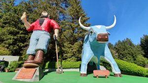 Try to spot Robby holding the ax at the Paul Bunyan & Babe the blue ox statues; Trees of Mystery
