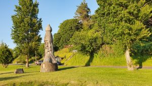 An 18 foot tall Indian Head carved by Peter “Wolf” Toth. This is one of 75 Indian heads carved from big logs throughout the USA; Astoria