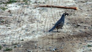 California quail seen at our free camp site near Yosemite; Kamook Staging in Sierra National Forest