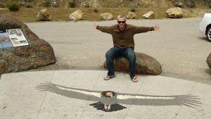 Robby demonstrates the massive wingspan of a California Condor; Big Sur coast