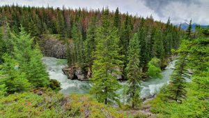 19 June: Walk around Jasper, hike Old Fort Point trail. Pick Lars up from train station. Hike Maligne Canyon. O/n at Pocahontas Campground ($20 per night, up to 6 pax, for an unserviced site with fire pit, bathrooms, water, dump station)