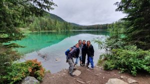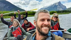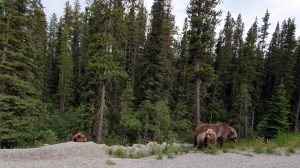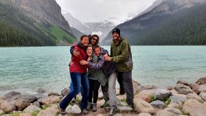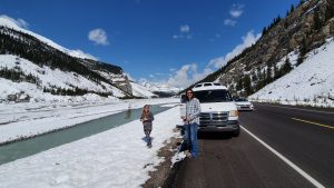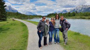 Our trip to Canada had been kept a secret for several months as we were trying to coordinate a surprise reunion with Ally Ranger (our travel buddy who we spent a few months in Africa with back in 2010). She was only expecting Lars who was flying in from Norway for a Canada getaway. Little did she realize that we had been coordinating in secret with Lars to make this trip a reality. Hence our mad dash around the States to get to Jasper in time to link up with Lars. The border crossing into Canada was smooth, and the route to Jasper was gorgeous so our long ride was enjoyable. Jasper is a cute town and after linking up with Lars, we planned to do a few easy hikes – Old Fort Point, Maligne Canyon, Valley of the five lakes, and Edith Cavell. Too bad the weather didn’t cooperate as it poured down with rain for 2 days straight and the clouds moved in. We did manage to salvage our plans with a day relaxing at the Miette hot springs during the worst weather (it was actually snowing at the hot springs, making for a winter experience during summer). When the weather cleared up, we made a break for it, squeezing in several waterfalls (Athabasca, Sunwapta), and a short hike to Athabasca Glacier while admiring the scenery on the spectacular Icefields Parkway. Truly a stunning drive when the weather cooperates, and we got to spot several black bears soaking up the sunshine after several days of inclement weather. By mid afternoon, we arrived to Lake Louise in time to surprise Ally. Which was awesome…her reaction, shock, and happiness were priceless! Highlights of Lake Louise included the lake itself, Fairmont Chateau, and the drop dead gorgeous Moraine Lake. We saw a total of 5 grizzly bears (2 at our campsite and 3 by the roadside after leaving Moraine Lake), so heed those bear warnings! From Lake Lousie, we made our way to Banff where canoeing on the Vermillion Lakes, hiking up Tunnel Mountain, getting lost at the posh Fairmont Banff Springs hotel, and wandering up Johnson Creek valley were the highlights. From Banff, we made our way to Canmore (in Gaelic, Ceannmore means “big head”) where we tried poutine (french fries and cheese curds smothered in gravy….yum), drank at a few breweries, hiked the pretty Higashikawa/Friendship Trail with nice views of the Bow River, and of course piled on top of the big head statue. From here, we made our way on the rugged Spray Lakes Trail towards Kananaskis, chock full of stunning scenery and wildlife…bears, moose, and deer, oh my! From Kananaskis, we drove towards Calgary and based ourselves out of Ally’s apartment for a few days. Calgary was gearing up for the annual “stampede” but we were one week too early for the festivities! Instead, we consoled ourselves with some amazing wings, breweries, food and fun. All too soon, we had to split from the group to continue our road trip, and we made our way down to Waterton, the Canadian side of Glacier Park. Unfortunately, the park had suffered extensive fire damage in 2017, and quite a few hikes and trails were off limits. Nevertheless, we were glad we visited because the highlight here was undoubtedly the phenomenal wild flower vista at Bison Paddock…colorful flowers as far as the eye could see! And that was it, we crossed the border back into the US after 11 fun days in Canada. What a special country and we look forward to coming back here again one day.
