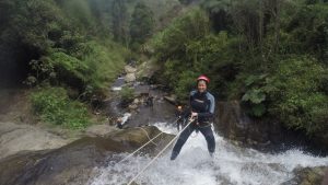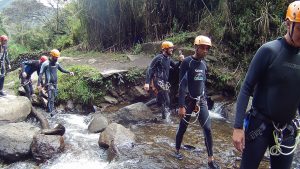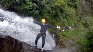 After breakfast, the canyoning rep showed up and we rode into Banos to pay for our tour ($25 each). Got a wet suit, water shoes, and harness before riding out to Ulba waterfall. There we were given instructions on how to abseil down the waterfall before giving it a go. Lots of fun and the grand finale was a 50 meter leap of faith down a massive waterfall. Had a brief stop in Banos before our ride back to Rio Verde’s “Aroma & Sabor de Mercedes” for her lovely empanadas. Relaxed at the campsite before our BBQ dinner put on by our Argentinian campsite hosts. O/n at Pequeño Paraiso.