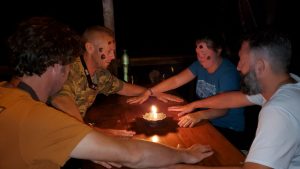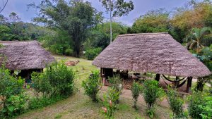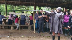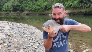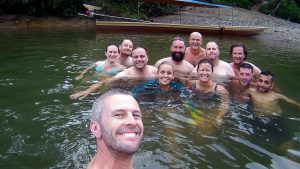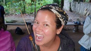 6 piranhas from Tom’s pond died last night so one of his workers was gutting them by the riverside to sell after smoking them. After breakfast, had a 3 hour jungle hike through the Jatun Sacha Biological Reserve with Octavio, our local guide. Cooled down in the river (piranha free we were promised) before an afternoon visit to the village of Kichwa Mirador Kallari. Ate grub worms, witnessed a wedding between Jeremy and Lisa, and used a blow dart. O/n at Arajuno Jungle Lodge.