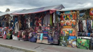 Loaded onto our home for the next 31 weeks, Sponge Bob, and departed Quito for the town of Otavalo. Stopped at the “La Mitad Del Mundo” museum straddling the equator for a quick tour. Free afternoon in Otavalo so walked around the city, took photos of the colorful murals, and had street food at the night market. O/n at Hostal Valle del Amanecer (WiFi, hot showers, tiny double beds, breakfast of pancakes or fruit/granola/yogurt included)