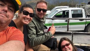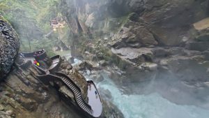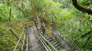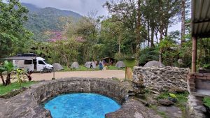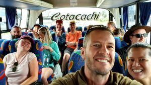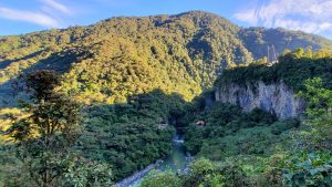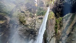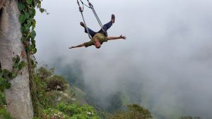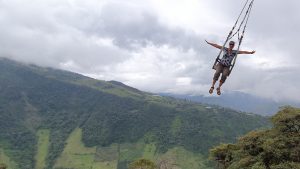 After breakfast, took a bus into town for the Virgin thermal springs. Ate lunch and met up with part of the group at “La Casa del Arbol”, the famous swing in Banos. Rode an ute back to our campsite and hiked to Machay waterfall. Becky’s cook group (cook group 2) made lasagna for dinner. O/n at Pequeño Paraiso.