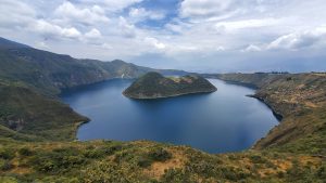 Joined the majority of the group headed for Laguna Cuicocha (public bus and ute). Rode to the top of the volcano for an additional $2 for a phenomenal view of the lake. Hiked back to the visitor center before taking an ute/bus back to Otavalo. Hot shower at the hostel before packing a day bag for the Amazon jungle trip. Street food for dinner. O/n at Hostal Valle del Amanecer.