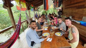Departed Otavalo and drove to Tena for lunch. In the afternoon, drove towards the Amazon and parked near the riverfront. Took boats to Arajuno Jungle Lodge, our home for 3 nights. Our hosts were Tom and Charo and they welcomed us with Guayusa tea before allowing us to choose our own rooms. We shared a top floor room with Keith. Our room had a gorgeous view of the river, property and a private balcony and ensuite bathroom. Common area at the jungle lodge had hammocks, library, and tables to play drinking games. O/n at Arajuno Jungle Lodge (hot showers, super comfy beds, food all included).