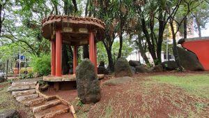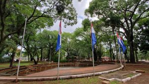 Paraguay flags at the circular plaza in Chiang Kai Shek Memorial Park, Ciudad del Este’s Taiwanese Garden