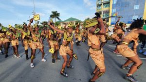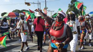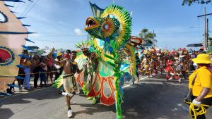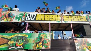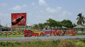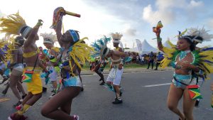 Happy Mashramani! Today is the 50th anniversary of Guyana’s Republic Day and it was promised to be a huge celebration. But first we wanted to see more manatees! Yesterday’s group got the juvenile manatees to climb halfway out of the pond to reach the grass they were feeding them and we wanted to see if we could do the same. Danny joined us after breakfast and we took a cab to National Park. A bit pricey at 700 Guyanese Dollars for the 2.5 km drive, but hey, it was a holiday. Local youths were already in the parking lot of the park practicing their dance moves. The manatees had already been fed grass clippings so none of them were too eager to go chasing after our grass offerings so we took a few more pics and then headed back to town by foot since many of the roads were already blocked off to traffic. A heavy downpour hit us just a few seconds before we actually got to the hotel but at least we escaped a massive drenching, unlike Jeremy who was trying to get coffee at a local cafe (closed) and came back soaked. So we waited the rain out with an impromptu picolo drinking game in our room. Rebeca had woken with a massive migrane but she was feeling better by the time we decided to head out and see what the party was about. We packed our drinks into plastic bottles and I discovered that my huge Smirnoff Ice had exploded in the freezer so I ended up with a smirnoff ice slushy instead. Pretty tasted until I realized there were some glass shards in my drink! Danny and Leo were at the Red Bar so we joined them for some more drinking games while we waited for Mash to kick off. It was supposed to be at either 10 am, noon or 1 pm and no one knew exactly what time the parade would start. But we killed some time playing games until Gary, Lisa and Rob joined us. Around 12:30 pm, the first float rolled by and after that, we were on our feet cheering the dancers and floats as they passed by. Danny issued a “selfie challenge” to see how many selfies we could take with the dancers and how many floats we could hop on which ended up being a great idea because we threw all caution to the wind and would rush up to random strangers and ask to take photos with them, resulting in a gorgeous collection of funny, impromptu memories. Almost everyone was delighted to pose for pics, and it was a great celebration. By 5:30 pm, we had walked up and down the strip and seen all the dancers and floats so we finally decided to call it quits. The only food we had eaten all day was fish and chips from a local hole in the wall and one large meal filled us both up for lunch and dinner. Back at the hotel, Jeremy was keen on partying some more but poor Rebeca had caught the viral infection that had been ailing Bert and Cat. She was under the duvet with chills and feeling quite sick. We were quite content to staying in our room watching some TV for the rest of the night. What a fun day today!!