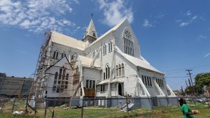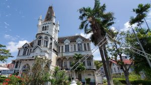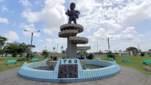 It was a comfortable night’s sleep with the AC on and a duvet to snuggle under. We joined Jeremy and Rebeca for breakfast downstairs and chatted about what their plans were for today. Rebeca had a job interview this morning and Jeremy just wanted to chill. Allison was keen on joining us on a walking tour of Georgetown today and we told her we’d let her know when we were ready. However, while researching the highlights of the city, we found out that Georgetown has quite the reputation for being dangerous. Especially with muggings (daytime and nighttime) and tourists are often targeted. There were quite a few recent posts online that suggested it would be foolish to walk around Georgetown in a small group, so we reconsidered our original plan and decided to ask Jeremy and Rebeca to join us after her interview. Luckily, they were on board so just before 10 am, we set out on a marathon day to explore Georgetown by foot. Our hotel was not in the most central location, so it was a bit of a hike to get anywhere in town. First stop was the Botanical Garden at the zoo as we had read it was a good place to spot manatees. However, despite looking for them for over half an hour, there were none to be found. So we continued on and visited the Castellani House, which houses Guyana’s National Art Gallery. Entrance was free and the artwork was worth a quick stop. Then onward to the 1763 Cuffy Monument located in the square of the revolution. Cuffy became famous because back in 1763, he led a revolt of over 2500 slaves against the Dutch colony. One of the security guards warned us that safety in Georgetown was something to be aware of as the younger generation has started a new (and disturbing) trend targeting tourists to rob. She warned us not to resist because they often use knives or guns and it is not worth risking your life over and not to carry any valuables. If we weren’t paranoid before, this set us over the edge! From here, we walked over to the Bourda Market where meat, fish, fruit and veg were for sale. The people here were very friendly and welcoming. Next up was St George’s Cathedral (under construction), and the handsome houses on the Avenue of the Republic (City Hall, City Engineer’s Building and the High Court). Then a quick wander around Stabroek Market where we quenched our thirst with water and soda. The friendly vendor gave us a bottle of peanut punch to try after I asked if it was soya milk (it looked the same but tasted different). He refused any payment for it and was very kind to us. From here, Jeremy developed a case of the poopy pants as the heat was getting to him. But we convinced him to stick it out with a cold beer at the Starbroek Sports Bar (6 GT beers for 1000 Guyanese Dollars), followed by lunch at KFC. Then he was willing to accompany us to the Guyana National Museum (free) where the highlight was a giant ground sloth that weighed up to 6 tons and was 6 meters tall. Our final stop of the day was the National Park where we searched for the elusive manatee. And we found over a dozen of them, super hungry and eager to devour freshly picked grass. We fed them grass for over 30 minutes before finally calling it a day. Allison’s tracker showed that we walked over 8 miles today and we were all pooped by 4:30 pm. An afternoon siesta until 7 when Robby disturbed Rebeca and Jeremy with the Baby Shark song. They joined us in our room for some beers before we finally decided to grab dinner at the nearby Fireside Grill and Chill. We all had high hopes for this place but the food was mediocre. The mac and cheese was served cold and the meals were just meh. Back at the Oriental Suites by 9:30 pm and it looks like beer pong won’t happen tonight which is fine by us! Tomorrow will be the kick off of this year’s carnival (Mashramani) with the official flag raising ceremony so we are looking forward to that.