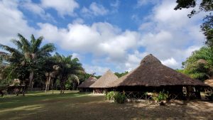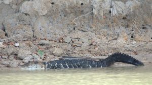 We finally pulled over to get some rest just after midnight in the town of Kurupukari. Total distance driven in 6 hours was 335 km. Now we had to wait for the 6 am ferry to take us across the Essequibo River. Our drivers slept in a nearby hut and all of us settled in for a crammed, hot, sticky night’s sleep inside the minivan! It was super uncomfortable and Amanda got a bit claustrophobic. I ended up sleeping on the ground outside which was way more comfortable than the van! At 5 am, howler monkeys woke us up and our driver came by to tell us to get ready. They wanted to be the first ones on the ferry. We drove to the locked gate and once it was unlocked at 6, our driver made a mad dash to the ferry. After crossing the river, we still had another 106 km to drive so our driver didn’t make any stops. At 8 am, we arrived to Kwatamang landing where we had to wait for the boat transfer to Rewa Lodge. 4 boats showed up, 1 to carry all our gear and 3 for transport. We hopped in with Keith and Allison and it was a journey of under 3 hours. A river otter munching on a fish was spotted and then a second otter but our boat driver just zoomed on by, resulting in us getting angry. What is commonplace for them is special for us and we would have liked to take some photos. We spotted some caimans and birds but no other otters (even though the guide said we’d see more) and we pulled into Rewa Lodge just after 11 am. My flip flop had a massive blow out and as I was digging out a spare pair, Futoshi grabbed the hammock I was planning on sleeping in. So we ended up sleeping in a hut with 3 hammocks with Keith as our roommate. Lunch at noon was delicious – chicken and fish, mashed potatoes, coconut flavored rice, salad and an assortment of 4 different types of juices. Danny gave us 3 tour options – village visit ($10) , 45 minute jungle hike up a mountain ($35), or visit massive lily pads ($20). We weren’t keen on any of them and the magic number of 8 was reached (4 per boat for lilies and jungle hike) as Allison and Futoshi opted out too. Keith wanted to talk stocks so Robby entertained him while I napped. In the afternoon, we had lovely cold showers and did laundry. A little bit of bird watching during sunset as the staff came by and hung up mosquito nets over our hammocks. The 2 groups returned after 6 pm and dinner was an hour later. The chef here is amazing as dinner was even more delicious than lunch. Soup starter, fried chicken, yucca chips, couscous, green beans and salad were all prepared to perfection. And banana pudding for dessert too! After dinner, we retreated to our hammocks and hid from the mosquitoes under the custom fitted hammock protected mossie net…ingenious! It was hard to keep our eyes open for long as the hammocks lulled us to sleep quickly.