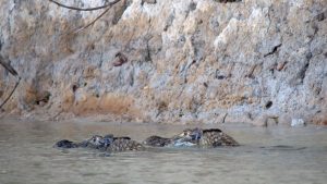 After leaving Suriname without our trusty truck (Spongebob), we arrived to Guyana on the ferry and were quickly stamped in. From here on out (until Spongebob manages to catch up to us), we will be using public transportation. Our first stop in Guyana was the village of Adventure – what a fabulous name! Then onward to Georgetown, our home for the next 5 nights. Our hotel was the comfortable Oriental Suites, located a bit on the outskirts of Georgetown, but super comfortable with two king sized beds, kitchenette, fridge, stove, en-suite bathroom, AC and strong WiFi. The internet is rife with stories about how dangerous Georgetown can be and the locals did nothing to assuage our minds, warning us repeatedly to never carry more money than we needed, and to leave all valuables locked up in the safe. We were a bit paranoid walking the streets of Georgetown but encountered no problems at all. Highlights of our time here included the semi-captive manatees in local ponds and canals who are responsible for keeping the canals and dams clear of vegetation. We got to feed them handfuls of grass which was such a cool experience! The other major highlight was Mashramani (Guyanese Republic Day). Dancers dressed in the best costumes danced their asses off for our entertainment, and it was great fun to go down to the main street and cheer them on. From Georgetown, we took a minivan down south, stopping a night to visit Rewa Eco Lodge which is nestled deep in the heart of Guyana on the Rupununi River. To reach the lodge, we had to take a 3 hour boat ride which was pretty cool as there were river otters and birds galore. The lodge itself is magnificent, a little oasis in the middle of the jungle. Food here was excellent, and our hammocks were surprisingly comfortable (with their own custom fitted mosquito nets). From Rewa Lodge, we hopped back in the boats for a return 3 hour journey back to Kwatamang. Then into another van as we zipped towards the border town of Lethem. Here we had one overnight before crossing the border out of Guyana and into Brazil. These past 8 days have been a bit challenging as we are missing the truck and realizing that traveling via public transport isn’t always as comfortable as Spongebob. But the adventure continues and we are looking forward to our last few days in Brazil before heading into Colombia!