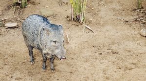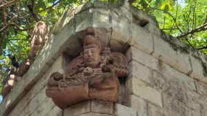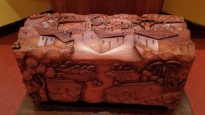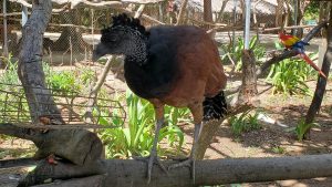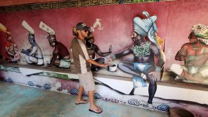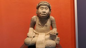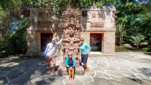 Robby strikes a pose at a display at the Mayan cultural exhibit; Maya Key
