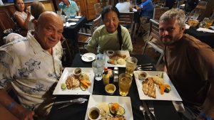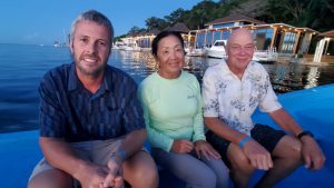 Robby, Ann and Bob hopping on the boat shuttle to dinner